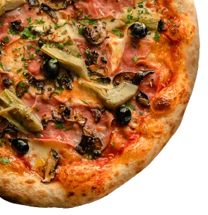 Salsa de tomate, parmesano, muzzarella, portobello, alcachofa, jamón natural, olivas negras y aceite de oliva
