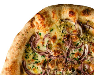 Salsa de tomate, parmesano, muzzarella, jamón natural, cebolla, orégano fresco y aceite de oliva