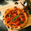 Salsa de tomate, parmesano, muzzarella, berenjenas asadas, gorgonzola, perejil y aceite de oliva