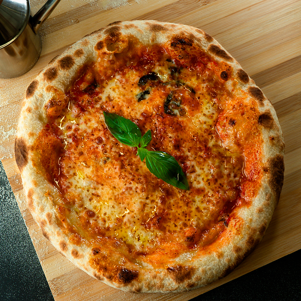 Salsa de tomate, parmesano, muzzarella, albahaca y aceite de oliva