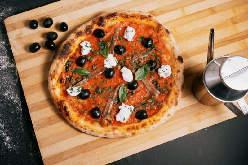 Salsa de tomate, olivas negras, alcaparras, anchoas, ricotta, perejil fresco, albahaca y aceite de oliva